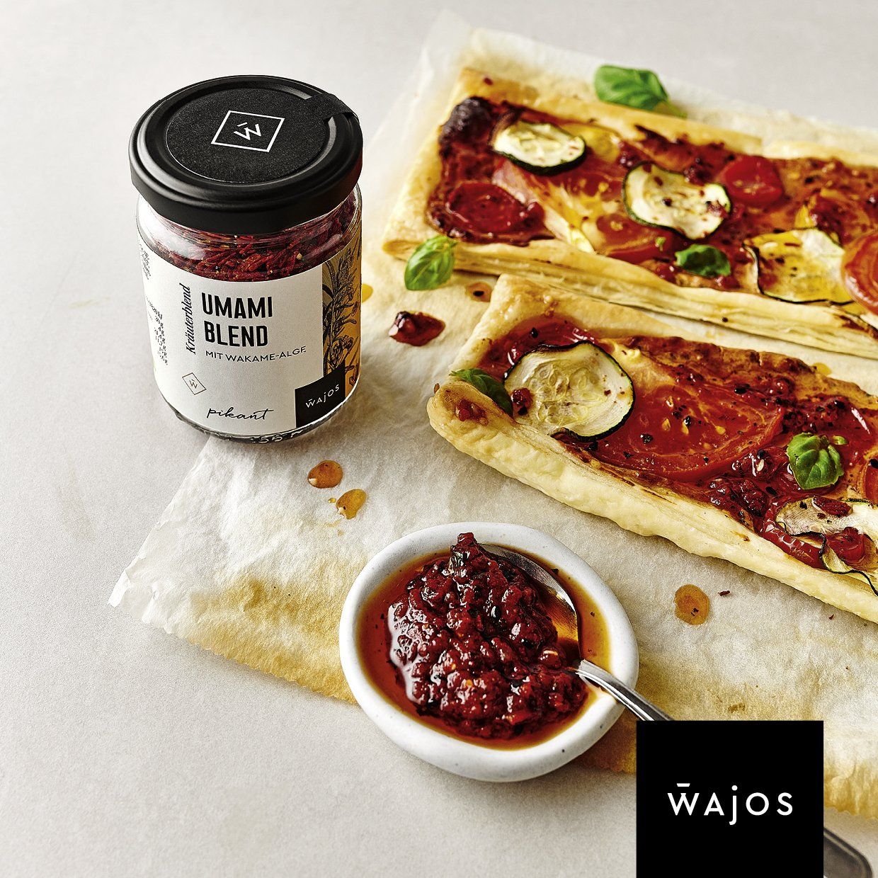 Umami-Chicken Rezept Kategorie Portionen Zubereitung Hauptspeisen 4 60 Minuten Sie wollen Polli Fino im Backofen zubereiten? Dann ist dieses Pollo Fino Rezept genau richtig. Unsere Gewürzmischung verleiht ihrer Pollo Fino Marinade dabei einen ganz besonderen Umami Geschmack. Einfach lecker. Zutaten 4 Stücke Pollo Fino (ausgelöste Hähnchenoberkeulen) 1 großer Spitzkohl – längs geviertelt 200 g Kirschtomaten Rapsöl – oder Wajos Albaöl Für die Salsa: 50 g gekochte Maiskörner 1 Schalotte – fein gehackt ½ Paprika – fein gehackt 50 g Kirschtomaten – in kleine Würfel geschnitten 1 EL Wajos Cape Malay Blend (alternativ Currypulver) Für die Sauce: 1 Schalotte – klein gehackt 10 mittelgroße braune Champignons – geputzt und geviertelt 30 ml Wermut (Noilly Prat) 1 EL Tomatenmark 2 EL Sojasauce Koriander – mit Stiel gehackt 1 Limette – Saft und Schale 2 EL Wajos Umami Blend 150 ml Wasser 1 EL Gemüsebrühe 50 ml Sahne Salz, Pfeffer Zubereitung / Anleitung Ofen auf 200 °C Umluft vorheizen. Als Erstes die Salsa zubereiten. Dazu Mais, Schalotte und Paprika kurz scharf anbraten. Mit Tomaten und Cape Malay Blend vermischen und kaltstellen. Für die Sauce Schalotte und Champignons in etwas Öl in der Pfanne anbraten. Mit dem Wermut ablöschen und etwas aufkochen lassen. Tomatenmark, Sojasauce, Koriander, Limettensaft sowie -schale und Umami Blend hinzugeben und unterrühren. Wasser und Gemüsebrühe dazugeben und noch einmal kurz aufkochen lassen. Zum Schluss Sahne unterrühren und auf kleiner Temperatur weiterköcheln lassen. Mit Salz und Pfeffer abschmecken. Die Schnittflächen des geviertelten Spitzkohls mit der Sauce einpinseln und auf einem mit Backpapier ausgelegten Ofenblech für ca. 30 Minuten in den Ofen geben. Etwas Platz für die Pollo-Fino-Stücke an der Seite lassen. Die Länge der Garzeit variiert je nach Größe des Kohls, daher häufig kontrollieren. Er sollte etwas Farbe annehmen und leicht knusprig werden, ohne dass die Sauce verbrennt. Das Pollo Fino in der Pfanne mit etwas Rapsöl oder Albaöl scharf von beiden Seiten anbraten, bis es Farbe bekommt. Ebenfalls mit Sauce bestreichen und in den letzten 5 Minuten zu dem Spitzkohl in den Ofen geben. Restliche Tomaten am Stiel in einer Pfanne mit etwas Öl scharf anbraten, bis sie Farbe annehmen und aufplatzen. Je Portion ein Pollo Fino mit Sauce, gerösteten Tomaten und einem Spitzkohlviertel anrichten und mit der Salsa garnieren. Wahlweise mit etwas frischem gehackten Koriander und gehackten Cashewkernen verfeinern. Für die Zubereitung des Rezepts benötigen Sie folgende Produkte aus unserem Sortiment